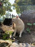 | 山の頂辺の神社でミコさんとネコさんが迎えてくれる。 |