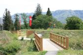 8年ぶり2度目の訪問。12時55分後閑着。駅前にタクシーが待機していたら、料金がいくらかかえるか知りたかったので利用するつもりでしたが、影も形もなし(ただし、乗り場前にタクシー会社2社の電話番号を表示)。月夜野大橋を渡っていくルートを知っていることもあり、前回同様、歩いていくことにしました。8年前は名胡桃城への案内板が一切なかったので、地元の人に行き方を尋ねたりしましたが、今回は要所に案内板が設置されていたので、初めての方でもわかると思います。ガイドブックには徒歩50分とありますが、登山に適した軽装で、軽めの運動靴を履いていたので、往路は片道30分、坂を下っていく復路は30分かからなかったと思います。予想以上に早く移動できたので、14時32分の沼田方面行き列車にも余裕で乗れました。スタンプ設置場所の名胡桃城址案内所では記念のグッズを貰ったり、岩櫃城同様、大変親切な対応でした。 |