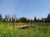 | 北関東城巡り2城目。岩櫃城から車で45分程度。観光案内所でスタンプを押し、来場者の記帳に協力。名胡桃城のクリアファイルとシャーペン、六文銭デザインのシールをもらいました。城址とても良く整備されており、連郭式の構造がとてもよくわかる作り。入り口周辺の黄色い菜の花(?)が綺麗でした。 |
