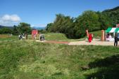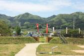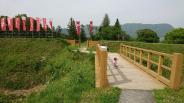 朝一番の新幹線で上毛高原、そこからバスで上新道へ。バス停から城址までは徒歩20分ほどです。9時前に到着しましたが、係の方のご厚意で案内所を開けていただきました。おかげで次の城である沼田城までのバスに一本早く乗ることができました。規模は小さいですが、よく整備されています。妻も「きれい、きれい!」と燥いでいました。 |