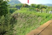 秀吉に小田原合戦の口実を与えた城。三日月堀が復元されています。 |