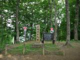 JR吾妻線群馬原町駅の窓口が東吾妻町観光協会になっており、そこで押印。真田道・番匠坂経由で岩櫃城本丸跡まで山道を50分程度歩く。途中の岩櫃山平沢登山口観光案内所から本丸跡までは500mほどで、案内所の周辺は人家もありここまでは舗装道路も通じている。熊出没注意の掲示が何か所かあったが遭遇することはなかった。本丸跡は展望台と指揮台を兼ねた城の中枢部があったと考えられる場所で真田氏の領国経営を知るためにも一見の価値がある。 |