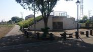 | 【100+5城目】 杉山城からマイカーで移動。郷土博物館の駐車場に駐車。当時の土塁の一部が残っている。中の展示もよくわかるが、映画「のぼうの城」が興味深くよく理解できると思う。 行田市はB級グルメで有名。郷土資料館の裏手に位置し、水城公園に長らく売店を出していた「駒形屋」でゼリーフライとフライを迷わず注文。 忍城といえば石田三成による水攻め。(「のぼうの城」のエンドロールまでご覧の方には聖地巡礼的にもなるが、)城の南、上越新幹線高架下にある石田堤史跡公園に残る石田堤の断面(写真)と、水攻めの際、三成が陣を張った日本最大(訪問当時)の円墳である丸墓山古墳を合わせて見学するのをお勧めする。丸墓山古墳の上からは、三成と同じ目線で忍城見つけることができる。→唐沢山城 |