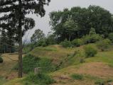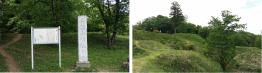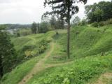 | 民家とお寺の細い道を上がると立て看板があり、そこから少し歩いて登ると土塁が方々に広がっていて壮大でした。 |
