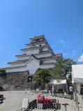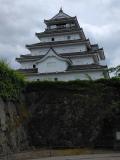 | 73城目 JR会津若松駅から会津バス1日専用フリー乗車券で訪城しました。近づいて五層の天守閣が見えてきたときは、ここも感動モンでした。最上階に登ったときは、伊達政宗がこの会津の山河を眺めて天下統一の夢を見たのだろうと思いました。その後、武家屋敷や飯盛山の白虎隊終焉の地を訪れたり、会津さざえ堂の中に入ったりして、会津の歴史に触れて充実した時を過ごしました。どこへ行っても小学生の修学旅行生が沢山いました。 |