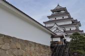 | 福島県の城巡りの旅で登城、天守閣が立派で雄大な城だった。宿泊したホテルから朝ランで訪問し、その後に、再度登城して、天守閣に入り、翌日は白虎隊十九士が眠る飯盛山から城を眺めた。 |