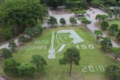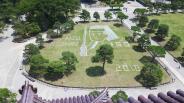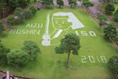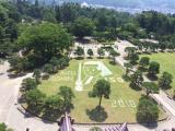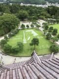 | 天守閣から庭の芝生のアートが見えた。 |