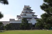 | 旧名黒川城、鶴ヶ城とも呼ばれていた会津若松城 蘆名氏をやっとの思いで手に入れた伊達正宗だが、すぐに秀吉に取られ、蒲生家が城主となる。 立派な天守はその大きさも、スタイルも見ごたえ十分、また広大な土地の中に残る石垣は、会津藩の強さを物語っている。 |