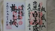 | 【20城目】 いつものメンバーと東北ツーリング。1日早く1人で会津若松へ前乗りし、晩飯に田季野で食べた“わっぱ飯”が超旨かった。 翌日合流前の午前中に登城。城内の稲荷神社で御朱印もいただいた。 |