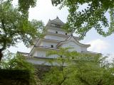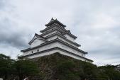 73城目。お城の城門を横目にしながら駐車場へと進むと、目の前に天守閣が見える。近畿地方にある近世城郭と比べても遜色の無い大きな城です。 |