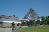 | 2015年5月と2016年10月の2回登城。1回目は鶴ヶ城公園内で、2回目は駅前でレンタサイクルを借りて、阿弥陀寺に移築された御三階、御薬園、甲賀町口門跡、天寧時町土塁等を見て回る。阿弥陀寺には斎藤一の墓もある。 城に行くと近くにある大名庭園も見に行くが、御薬園はこじんまりとしているが良い庭園だった。 |