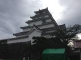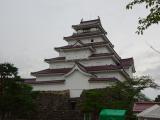 山形でさくらんぼ狩り後、郡山へ戻り高速バスで城最寄の「鶴ヶ城合同庁舎」で下車しました。若松城に到着した頃から小雨が降り出し「新潟行」高速バスに乗った時には雨が上がってました。 |