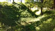 武蔵嵐山駅で電動自転車をレンタルして博物館に到着しましたが、ここも月曜日は休館日です。玄関にスタンプが置いてあるので問題は無かったのですが。城自体はそれほど大きくはないですが堀は深く、土塁は高いです。主郭の虎口は平入ですが、横に櫓台状の張り出しがあり、横矢が掛けられるようになっています。大河ドラマに登場したこともあり畠山重忠推しがすごかったです。二ノ郭以外は草ぼうぼうで「マムシに注意」や「スズメバチに注意」の看板もあり時期的に活動が活発と思われるのであまり深入りはせず、杉山城に向かうことにしました。 |