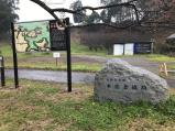 | 続100名城指定に伴い整備されたと思われる東口の駐車場から登城。同じく新しい案内看板、石碑プレートもありました。地元のこういう姿勢は大変いいですね。 |
