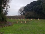 | 初詣のついでに登城。大佐倉駅で押印。駅から歩いて10分程度。農家の裏手の雑木林という感じです。「マムシ、イノシシに注意」との看板があり、冬の晴れた日の登城がおすすめかもしれません。起伏のある竹藪混じりの雑木林という感じです。空堀などよく残っており、まあ城跡といえばそうなんでしょうが。京成本線の撮影ポイントとしても最適です。 |