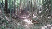 朝早く出たので、公民館に行く前に城攻め。細い細いと心配された道ですが、広く改修されている場所もありますし、たんぼ道ですし、大丈夫です。城山は堀切の奥だったのではじめはスルーしてしまいました。なんか空気の違う場所があり、神秘的に感じました。城山もそう、なかなか面白い縄張りです。奥の山から見た景色壮大です。 |
