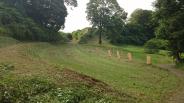 | 土塁・空堀の跡らしきものはあるが、基本、原っぱや竹林等があるだけの普通の丘です 周辺の田園風景は早苗と水面が清々しくのどかでよかった |