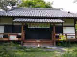 | 滝山観光駐車場に車を止めて登城。スタンプのある中の丸の入口までは少し歩くが、舗装された道路なので問題なし。中の丸の草原の向こう側の建物にスタンプが置いてある。 復元した屋敷かと思ったら、かつての国民宿舎の建物だった。 |