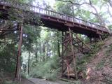 | 『続6城目』 無料駐車場に停めて、3分程で城の入口に到着。雨が降った後だったので、足元がツルツル滑りました。公園内は案内板も多く、よく整備されていましたが、初夏になり雑草が繁茂していることから、見にくい場所もありました。60分程散策した後、中の丸で押印(印影は良好)。近くの「道の駅八王子滝山」寄り、さくらんぼを買って帰りました。 個人的には、堀切から見上げた引橋です。 |