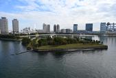 | 続5 ゆりかもめ「芝浦ふ頭駅」からレインボーブリッジ遊歩道サウスルートにて、上から見おろす 橋の上は風が強かったが、展望スペースもあり眺めはとてもよかった 第六台場は野鳥の楽園になってました |