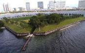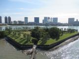 | 立入り可能な第三台場はそんなに時間がかからずに全体を散策することができます。 現在は公園として運営なので遊んでる親子連れもいましたね。 レインボーブリッジから第三台場、第六台場(立入りは不可)を見下ろしました。 天気が良かったので写真が映えました。 |