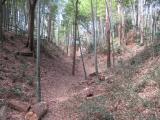 | 空堀と竹林の城跡.遊歩道もありよく整備されています. 第三京浜を越えた先に富士仙元という曲輪(?)があります. |
