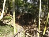 | 上り口が良くわからずに一本手前の民家の突き当りから無理やり竹につかまりながら登ってみたところ城攻めの困難さを身をもって体験できた。 |