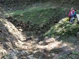 | 小田原側の上り路はかなり狭くなっているところがありました。駐車場にスタンプがあると聞いていましたが,なかなか見つからず,探したらトイレの脇に置いてありました。 |