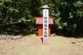 | スタンプがある資料館の裏には、蔵座敷と藁葺き屋根の家があり、NHk花子とアンのロケに使われたとの説明文がありました。また、新府城跡は案内標識から少し離れたところに飲み物の自販機が置かれた専用駐車場があり、ここから歩くのですが県道17号道路は非常に通行料が多く注意が必要です。城跡には二つの道があり、一つは新府藤武神社への鳥居をくぐる石段で本丸跡まで約10分、もう一つは鳥居の石段から更に南へ行ったところにある案内標識がでている道でここからは坂道だけで、ゆっくり上っても30分かかりませんでした。ここも大河ドラマ真田丸のロケ地になったとの説明文とともに武田勝頼が滅亡に向かった城とのことでした。 |