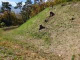| 小高い山。階段で登ると結構くる。土塁が割りと残っている。 |