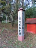 | 青春18切符にて、新府駅に11時25分着。公式ガイドブックの地図では駅から一本道で行けるかと思っていたがグーグルマップが役にたった。小走りで10分弱。県道七里岩ラインに案内表示がある。神社への登り階段があり途中まで上ったが不気味だったのでやめて、その近くにある砂利道から登城。三日月堀や三の丸、本丸跡等を順に確認できる。本丸跡に神社があり、戻りは神社の階段を下った。スタンプは城から2.2キロ先の資料館。県道を小走りで向かい、押印後は、1.6キロ先の韮崎駅から13時34分発の電車で甲府駅へ。 |