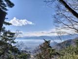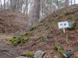 | 145城目 マイカーで登城しました。 麓の駐車スペースに駐車し、念のため熊鈴を付けたうえで登城開始しました。 所々にある倒木をくぐりながら道を登っていくと、次々と曲輪が現れ、登山口から35分位で主廓に到着しました。 途中の不動曲輪では、雪を頂いた南アルプスが見え、素晴らしい眺めでした。 |