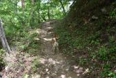 良い天気でしたが、過酷な登城でした。山道の勾配は急です。景色も見えず、遺構も無い。ひたすら登ります。・・・まで・・・mくらいの表示が無いと、登っても登っても先が見えず、つらい道のりです。 |
