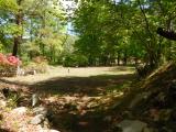 | 続47城め。藤村記念館の方が「小学生でも登ります」と言われたが、もうすぐ還暦の 私には骨身にこたえる険しく過酷な山道だった。汗だくになって、へとへとになりながら、主郭跡へ。さらにその先の堀切に行ってから下山。 |