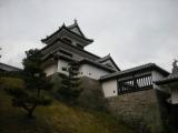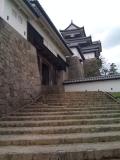 | 一ヶ月ぶりの城攻めです!福島攻めまずはここから。駅に着く電車の車窓から見えて、一気に気分が盛り上がりました。石垣が立派でした。ガイドのおじさんが、三重櫓はその役割から、天守閣と言ってよいと教えてくれましたが、人によって見解が分かれるようですね。あ、三重櫓は建築基準法により、建物ではなくて「工作物」なんだそうで、そのため一度に入れる人数が制限されているそうです。 |