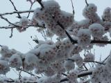 | 早朝からの雪で一面真っ白な雪景色。 桜は満開のようですが、その上につめたそうに 雪が積もっていました。 4年ぶりの登城ですが、スタンプ押して帰ってきました。 |