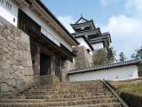 | 【57城目】 駅の目の前にあり気軽に登城できるのがとても良い。 木造による復元された三重櫓と前御門、石垣がすばらしい。 櫓に使われた木材には何箇所か戊辰戦争時についた鉄砲跡が有るのが面白い。 |