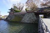 車は公園の止められる台数が少ない駐車場とは別に、隣にある市役所に無料で止められました。完全に花見会場となっていたので城内よりも、水堀の外からの外観を十分に楽しみました。スタンプを押すためには、天守閣に登らねばいけませんが。 |