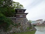 長野6城目天守閣資料館開店30分前に駐車場に到着。駐車場から思っていた以上に立派な天守閣が見え、「続」だからとバカにしていた自分を戒める。公園内では、冠木門、角櫓跡など堪能。時間が余ったので諏訪護国神社で「宝くじがあたりますよーに!!」と本気のお願い。望楼型三重の天守閣内は資料館で、最上階から諏訪湖が(諏訪湖の水溢れそうだな〜と思いながら)眺望できた。 城内にある高島城亀石に無駄に水をたくさんかけ、城攻めを堪能した。 |