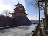 | この時期、城の堀はほぼ結氷している。城内に入り、天守資料館でスタンプゲット。 昔はすぐ下まで、諏訪湖の水が来ていたそうで、想像するに楽しい。公園になっていて、それほど大きくはない。 |