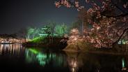 | 公園内すべて桜がある。 素晴らしかった。石垣ないけど、堀が綺麗 |