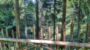 城の近くにダムがあります。うっそうとした林という感じですが、ところどころ遺構が残っていました。スタンプは城からかなり離れた場所にあります。 |