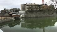 | 城跡の敷地が官公庁で利用されているのは、むしろ定番ですが、これだけガッツリ堀と石垣に囲まれた誰が見ても城の中に官公庁がでーんとあるのは全国でもここだけでは?話には聞いていたものの、もう笑うしかない。ある意味貴重なので、郊外移転とかしないで令和の時代も駆け抜けてほしい(笑)。お城としては西北隅に天守台と復元の御廊下橋があります。 |