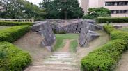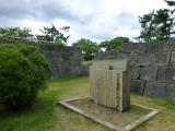 本丸に福井県庁と福井県警と議場が入っています。駐車場は県庁正面側のコインパーキングに止めました。スタンプは県庁入って左側の受付にありました。パンフレットは県庁外の石垣付近にあります。今昔マップは江戸初期の城下と現在の地図が重なるようになっていて分かりやすかったです。山理口御門が再建されており、門を潜ると天守台が残っています。地震により崩れた天守台も併設されております。小天守なのか不明でした。 |