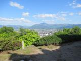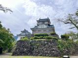 | 続百名城 39城目 晴れと小雨が交錯する変な天気。 神社の参道の横から登城。舗装された坂道と近道の階段道があります。どちらも割と簡単に登れます。 天守閣内には各種の展示物、展望室からは四方を一望でき、いい景色。 いい城下町と思います。 |