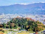 | 標高249mの亀山に位置し秋から冬にかけての早朝に大野盆地に発生する雲海に浮かぶ姿が幻想的 また、城下町の碁盤の目状の町並みや豊富な湧水も特徴的 |