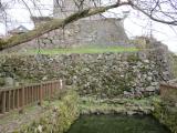 続20城目。丸岡城から移動。南登り口から百間坂を通って登城。但し、道は整備され過ぎて趣はない。 模擬天守ではあるが、天守台等の野面積の石垣が荒々しく、苔むして力強い。スタンプの状態はインクが掠れ、かなり悪い。 城山を下り、武家屋敷の旧田村家へ向かう。ここに土塁(土居)が僅かながら遺る。入場料を払って中から確認。土塁が堀と共に三ノ丸を囲うものだったことを教えてもらった。なお、入場料なしで外からも土塁は確認出来る。 |