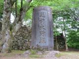 | 42 前日は福井に宿泊し、ちょっとはやめに起きて永平寺を見学してからの登城。 因みに福井から永平寺は30分弱で、永平寺から大野城までも30分程。 西口に車を止め、急な階段でショートカットして登ると、5分ほどで上がれる。 因みに天守は撮影ポイントなども設置してあり、結構整備されている。 城内でスタンプゲットしたが、その際次に来た人が百名城の本を取り出し、 「大野城」の欄に押そうとしていたのであわてて止めた。 まあよく知らない人は分かりにくいよな… 帰りは急な階段を使わず、スロープの道で同じ西口へ。 途中、正面側からの天守入り口のところで石碑の写真もゲット出来た。 |