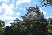 | 酷暑の中,結構な階段を登り天守閣にたどり着きました。他の場所で熊の出没で登れなかったと聞き驚きました。 |