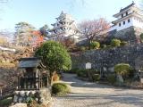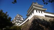 続日本百名城99城目です。大垣城の図面を参考に、昭和8年に木造復元した最古の城です。城からの街並み眺めがよかったです。山内一豊の千代さんの出身地だそうです。 |